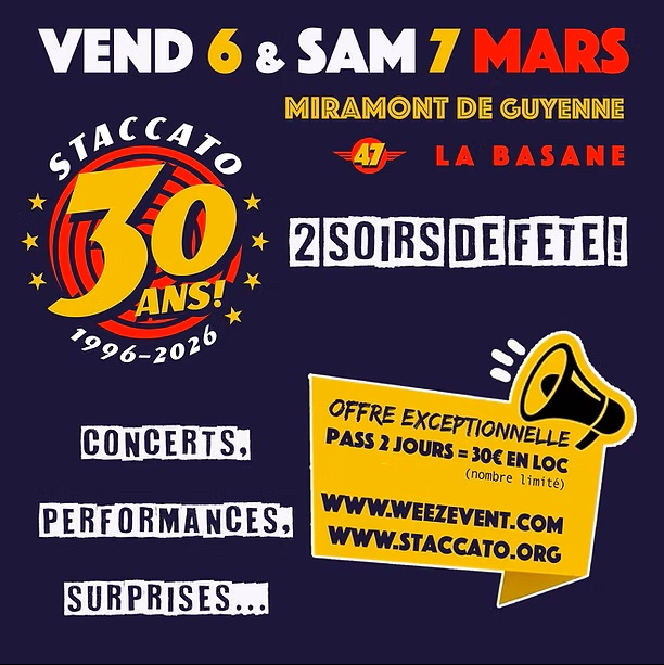 Mars 1996 – Mars 2026 Staccato célèbre ses 30 ans à domicile !