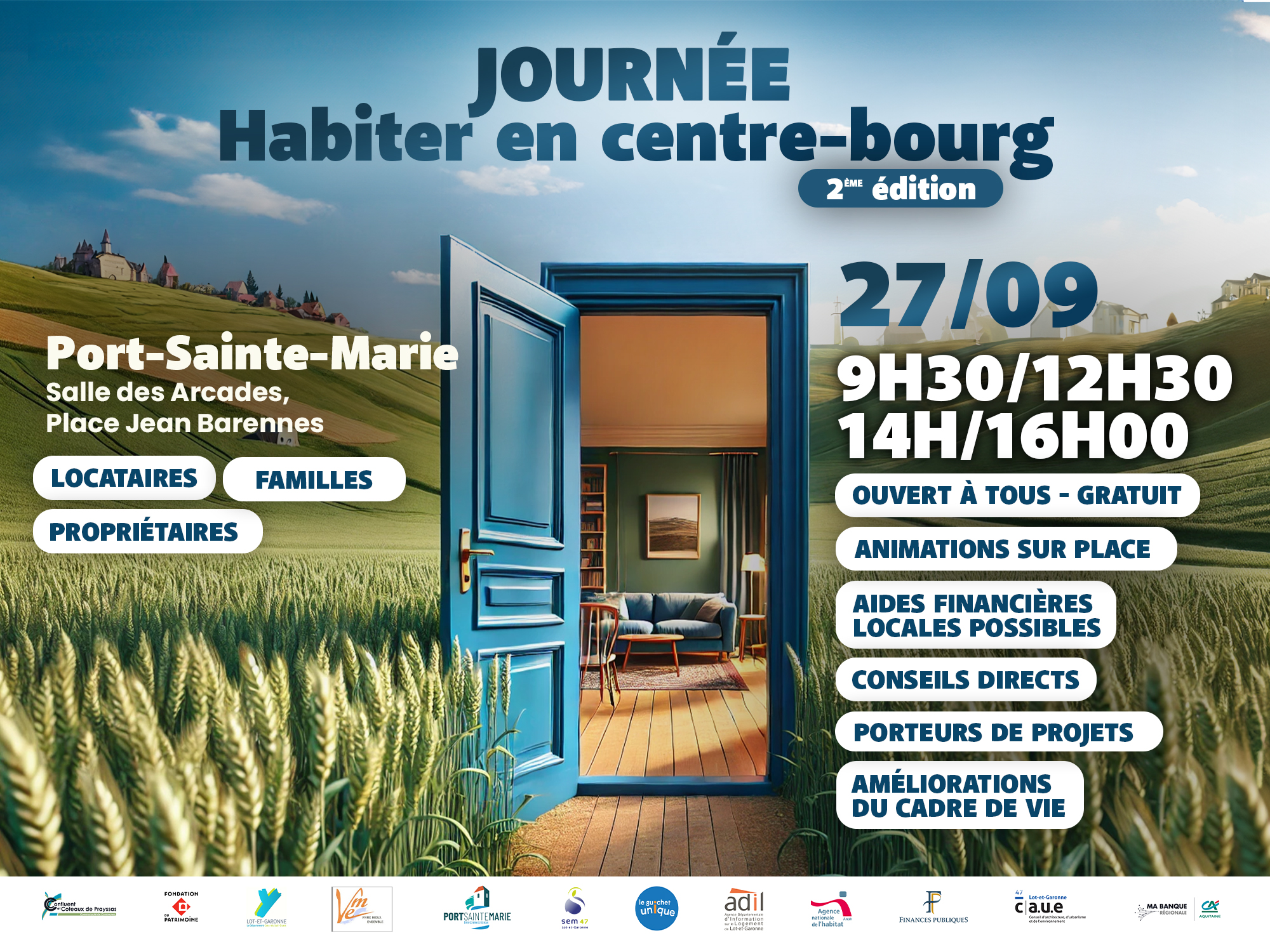 Après une première édition qui a connu un beau succès l’année, la commune de Port-Sainte-Marie, en partenariat avec la communauté de communes du Confluent et des Coteaux de Prayssas, organise une nouvelle fois une journée dédiée à l’habitat en centre-bourg, le samedi 27 septembre 2025 à la Salle des Arcades.