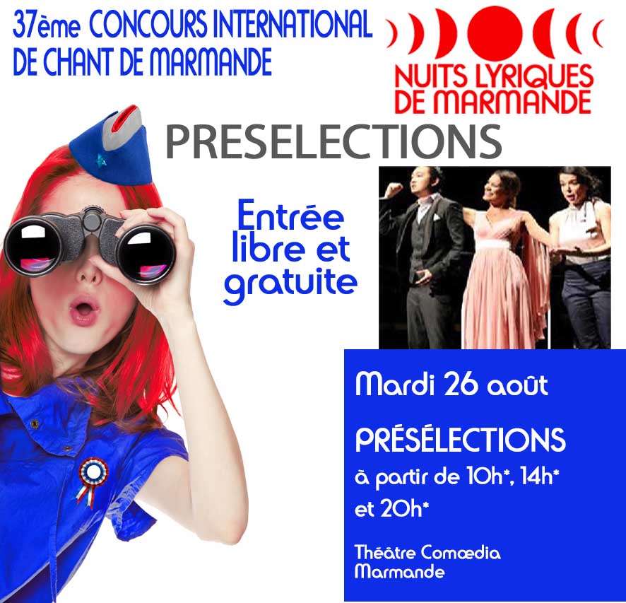 Deux jours de présélections qui vous permettront d’entendre un florilège des airs d’opéras et mélodies françaises les plus connus.