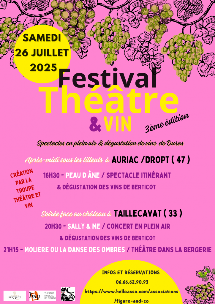Au programme : spectacles professionnels, théâtre, musique, chanson et dégustation* de vin de Duras.