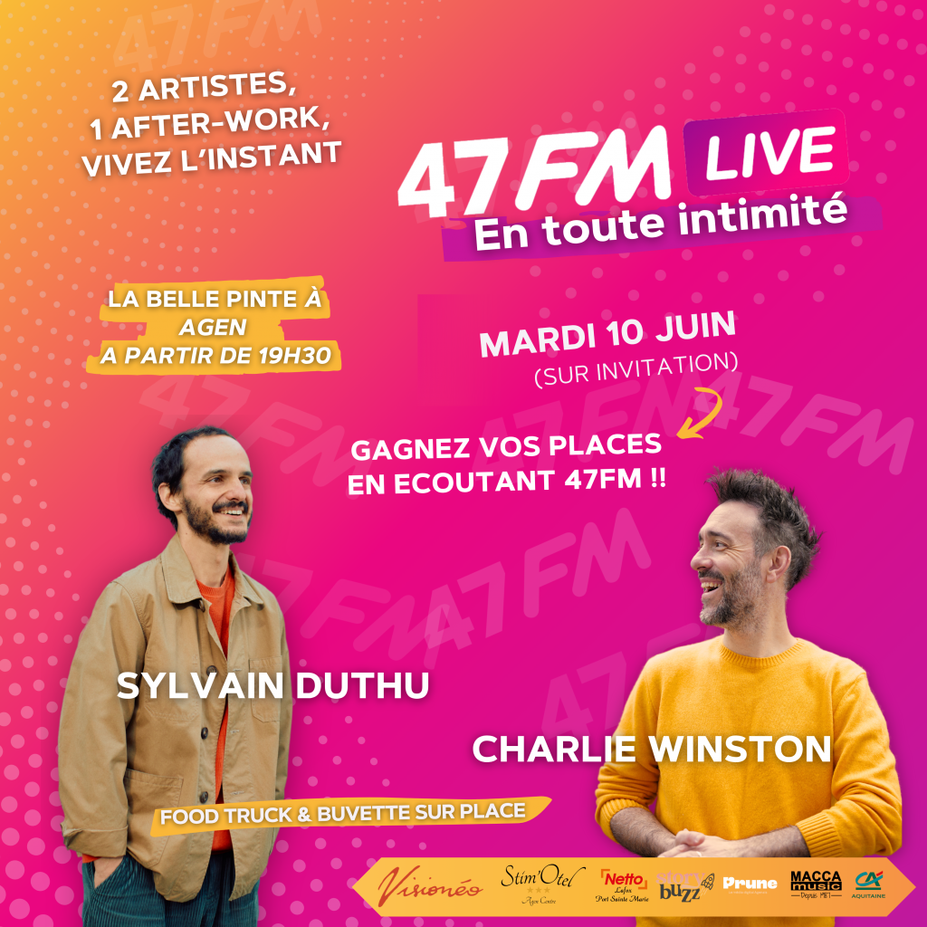 Pour bien finir la saison radio, 47FM propose son 4ème « 47FM LIVE » dans une nouvelle version « en toute intimité » avec deux artistes que la radio soutien et que les auditeurs de la radio du Lot-et-Garonne apprécient le mardi 10 juin.