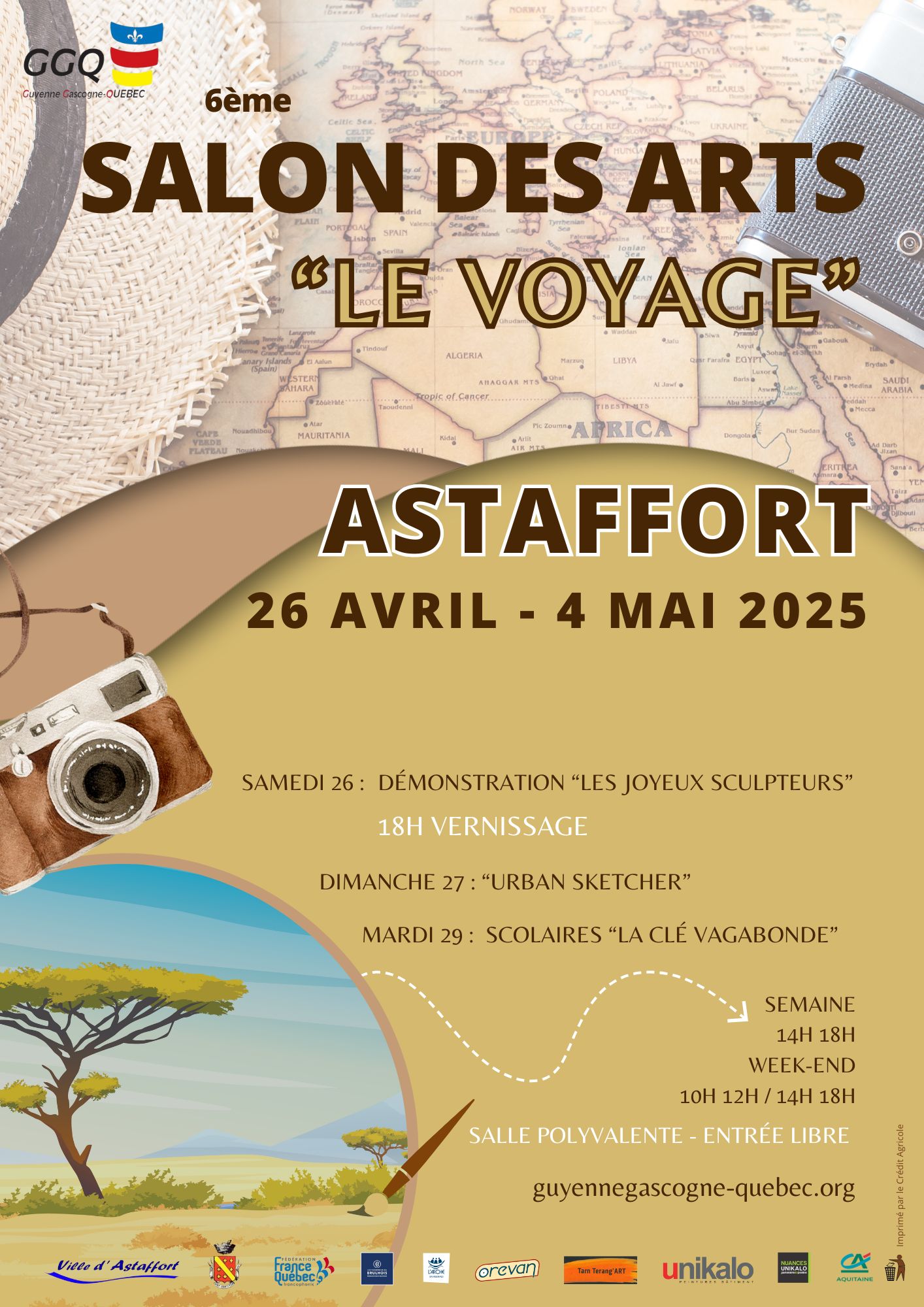 Pour cette 6è édition, l’association GGQ Guyenne Gascogne-Québec, propose un Salon des Arts sur le thème du Voyage.