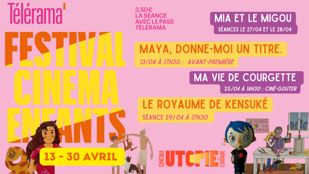 La 7e édition du Festival Cinéma Enfants Télérama/AFCAE, organisé par l’AFCAE et Télérama, aura lieu du 13 au 30 avril 2024.