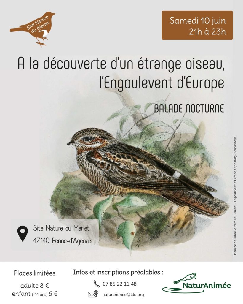 Je suis nocturne.J’ai un tout petit bec est pourtant l’ouverture de ma bouche est démesurée !J’ai un plumage mimétique.J’ai un chant vraiment surprenant.Qui suis-je ?! L’Engoulevent d’Europe bien-sûr.