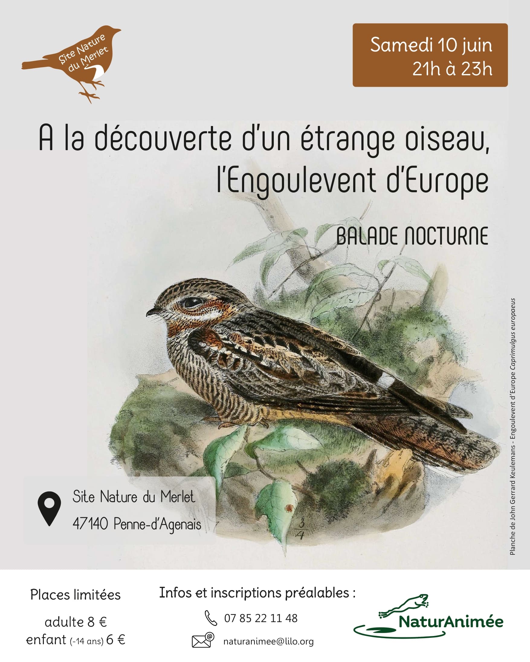 Venez découvrir cet oiseau lors d’une balade nocturne d’environ 4,4 km.Sans oublier tous les autres animaux de la nuit qui donneront de la voix. Rainettes, sauterelles, rossignols … la nuit n’est pas silencieuse en ce moment.