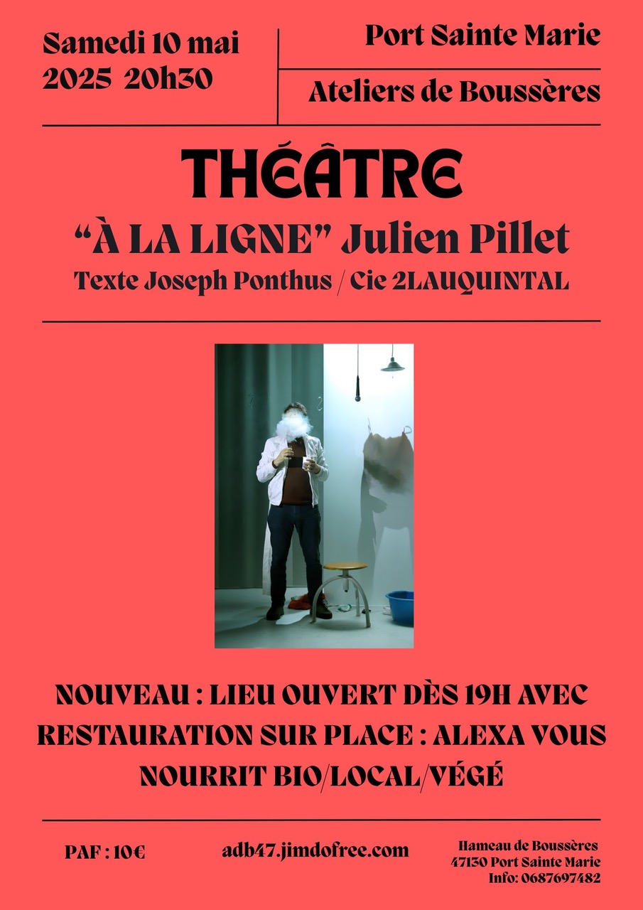 Adaptation du texte de Joseph Portus « A la ligne, feuillets d’usine » par le comédien Julien Pillet dans un spectacle seul en scène.