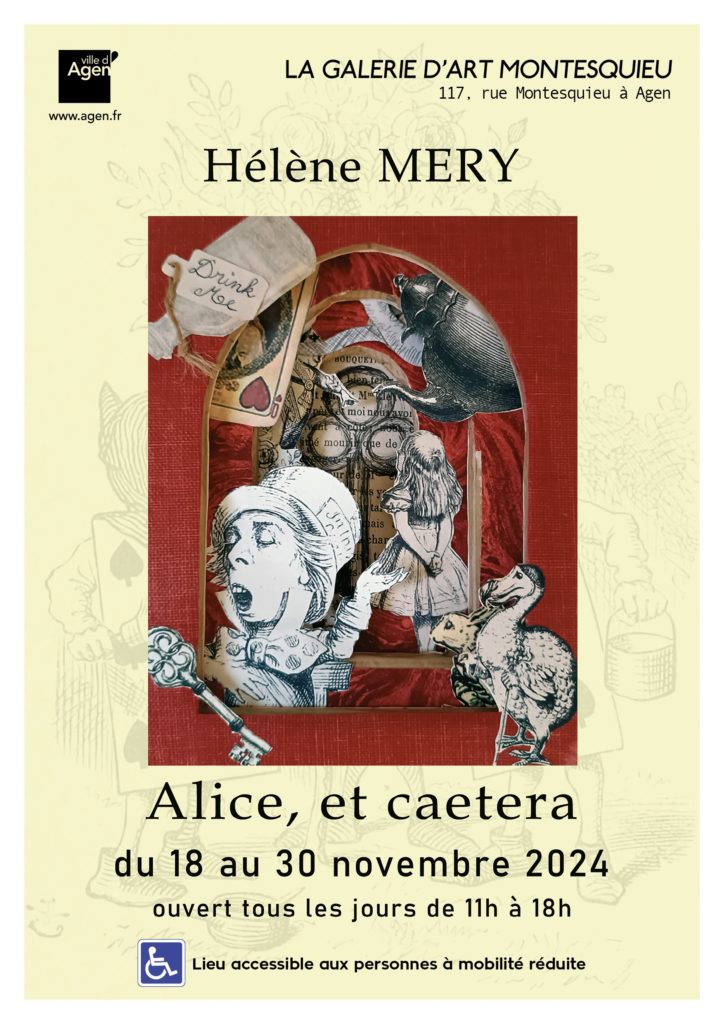 L’exposition « Alice et caetéra » vous invite donc à plonger dans le terrier du Lapin Blanc, à traverser le Miroir pour découvrir un monde où rien n’est vraiment à sa place. Vous y trouverez des tableaux, des collages, des dioramas, des tunnels-books ainsi que des créations plus anciennes qui semblent avoir toute leur place dans le monde des Merveilles d’Alice.