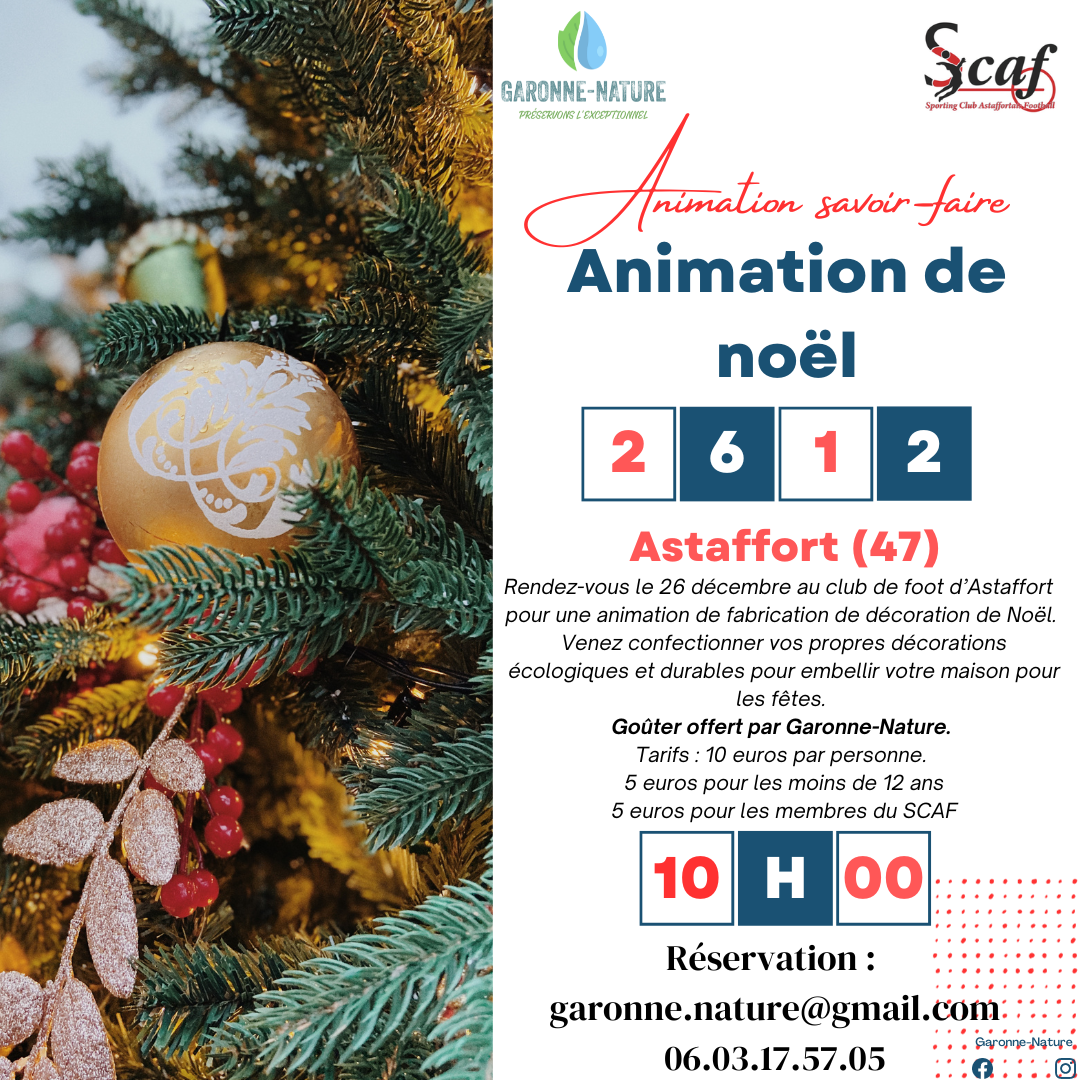 Rendez-vous le 26 décembre au club de foot d’Astaffort pour une animation de fabrication de décoration de Noël.