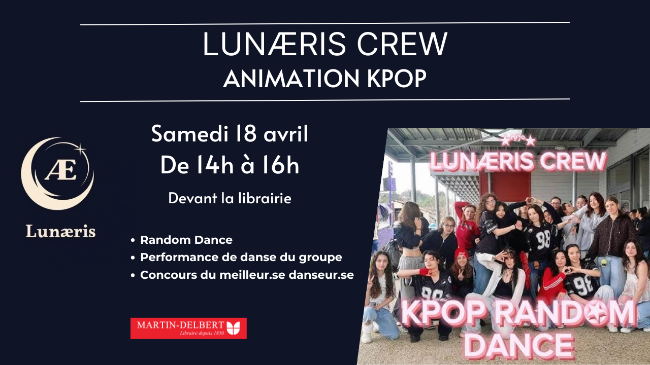 Le samedi 18 avril, de 14h à 16h, la K-POP s’invite devant la librairie avec le groupe Lunaeris Crew !