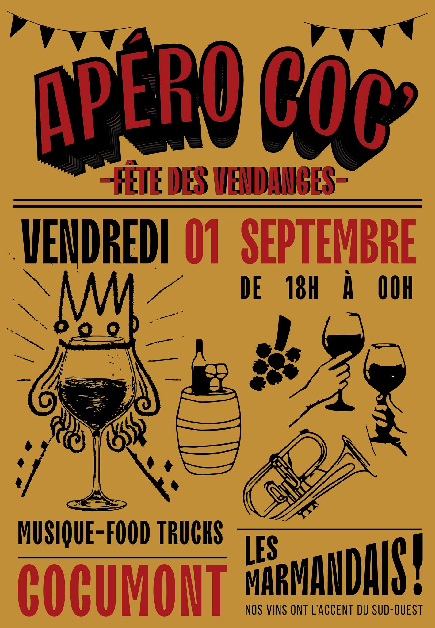 Apéro Coc’ Spécial Fête des vendanges : Food trucks, dégustation de cuvées locales.
