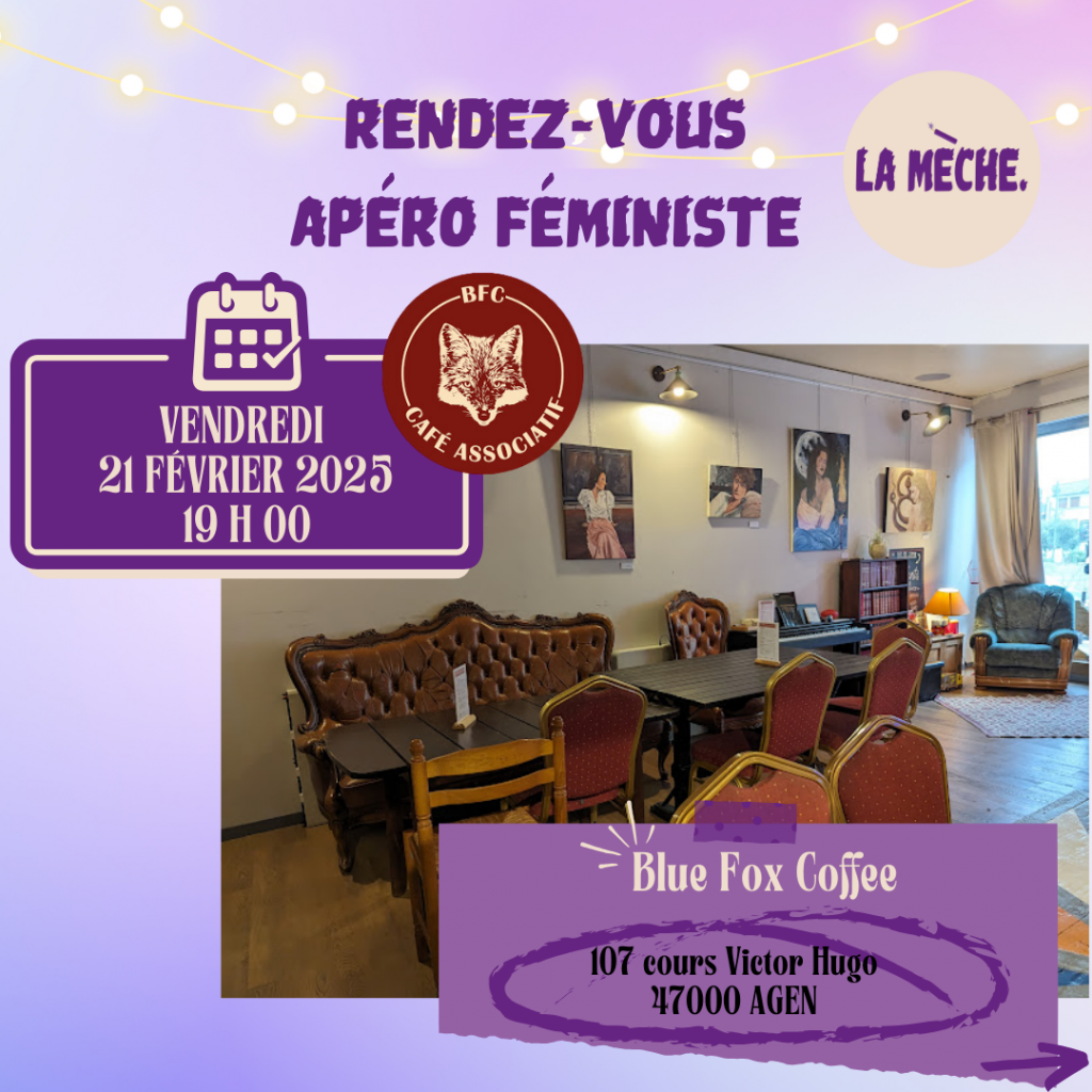 Venez nous rejoindre lors d’un temps convivial autour d’un verre pour parler de féminisme. Le tout animé par l’association La Mèche. Ce sera la deuxième date de 2025, nous avons hâte de vous retrouver !