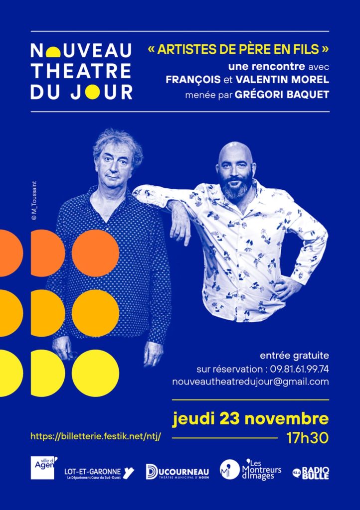 Avant la représentation du Dictionnaire amoureux de l’inutile au Théâtre Ducourneau Agen, nous vous invitons à une rencontre avec François Morel et son fils Valentin Morel, autour de la filiation artistique.