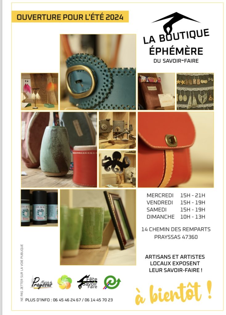 Rendez vous à Prayssas, à partir de 15h et jusqu’à 21h, pour découvrir notre jolie boutique éphémère.