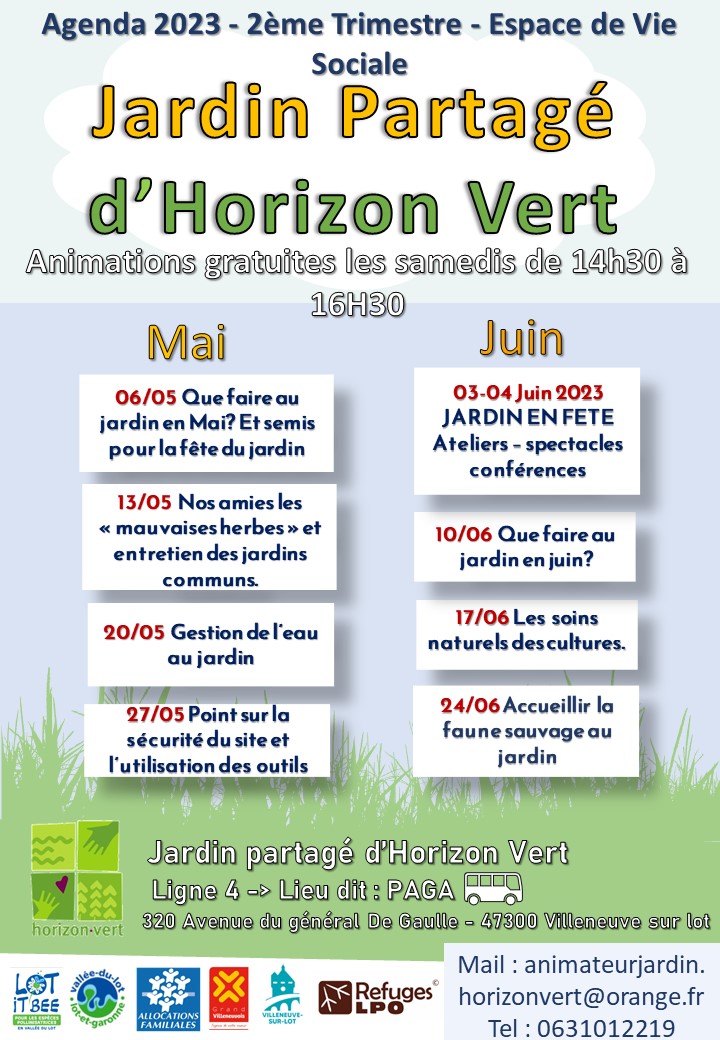 Renseignements à animateurjardin.horizonvert@orange.fr ou 06 31 01 22 19.