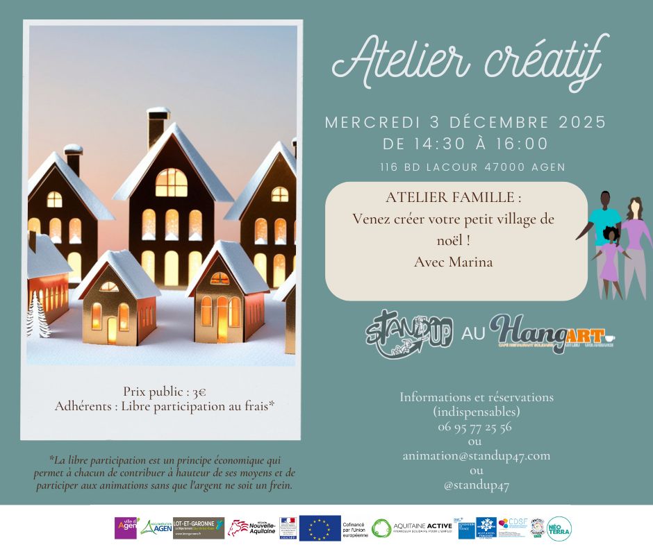 Pendant cet atelier, nous allons imaginer, dessiner, découper et assembler un joli petit village de Noël en papier.