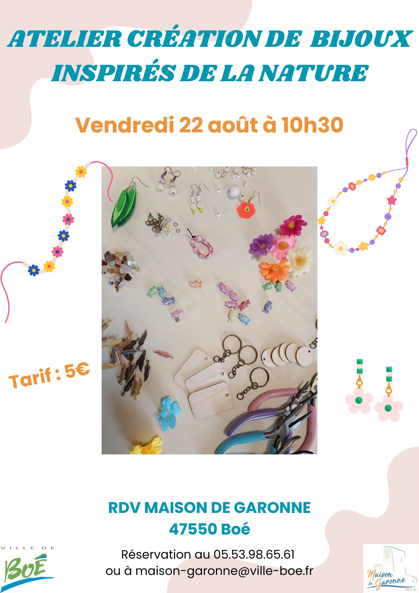Atelier bijoux. Atelier manuel de création de bijoux, breloques, portes-clés inspirés de la nature.