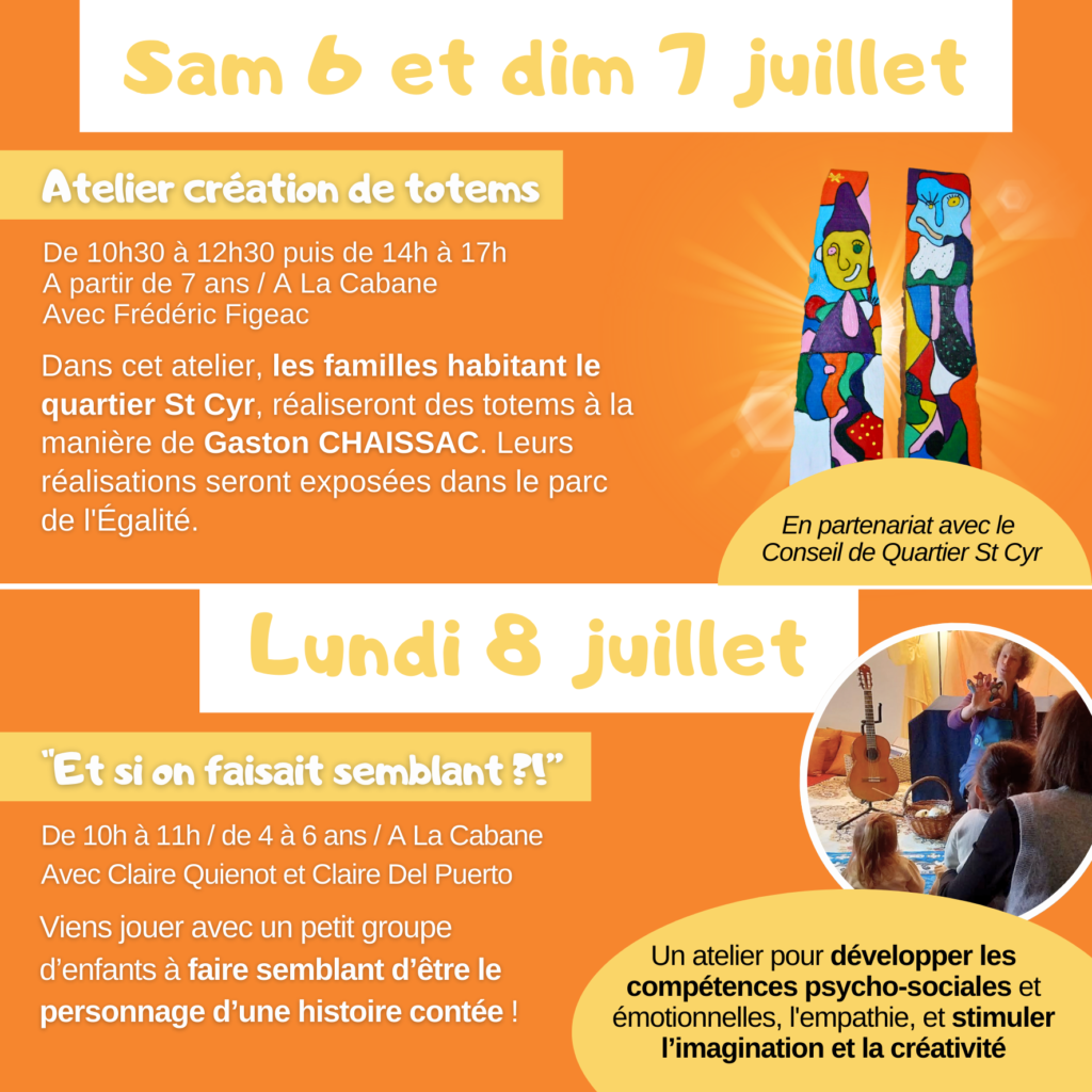 Dans cet atelier, les familles habitant le quartier St Cyr, réaliseront des totems à la manière de Gaston Chaissac.