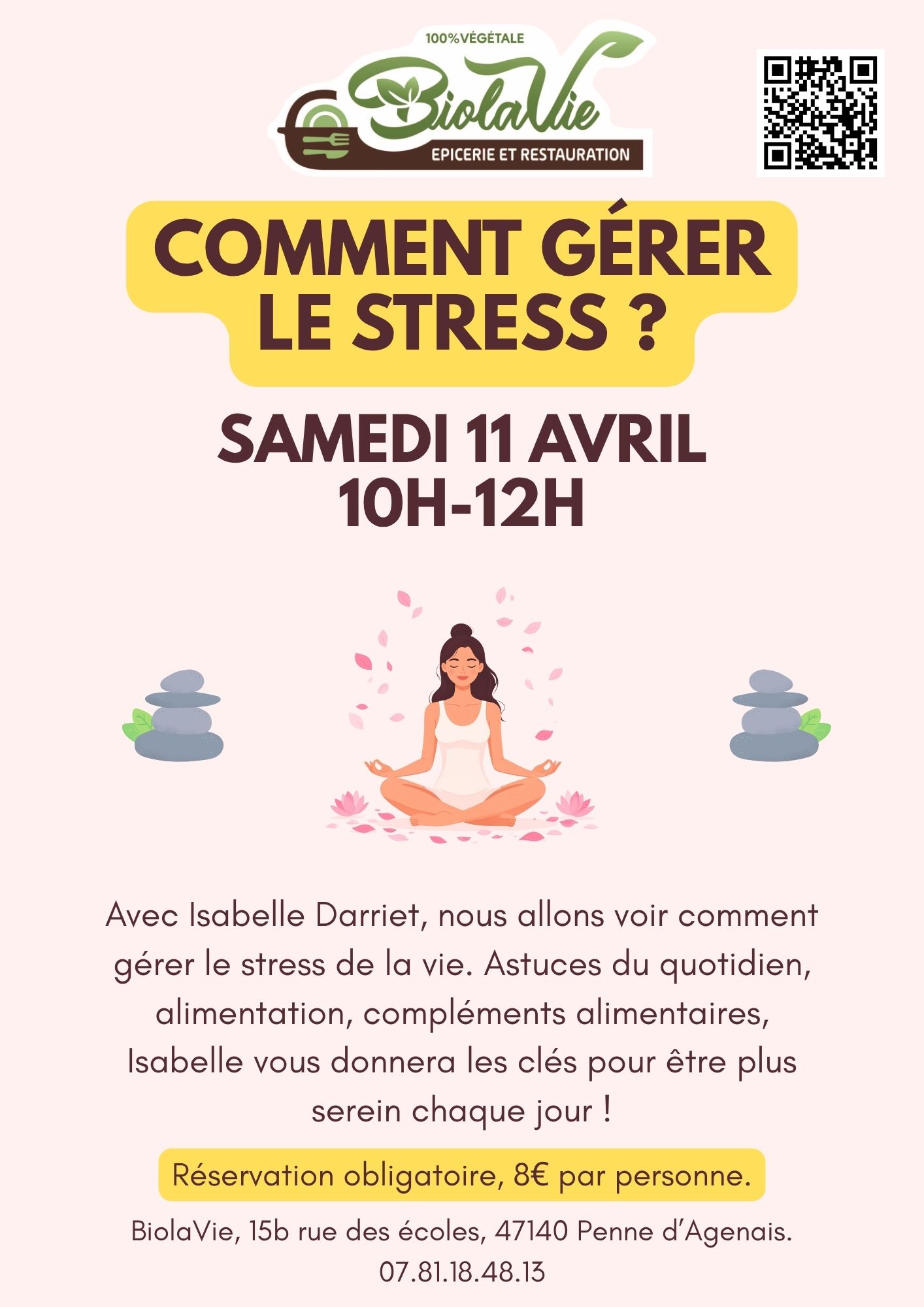 Nous avons toutes et tous des vies qui peuvent être stressante. Il est primordial de réduire ce stress pour notre santé. C’est pour cela que nous vous proposant cet atelier sur la gestion du stress !