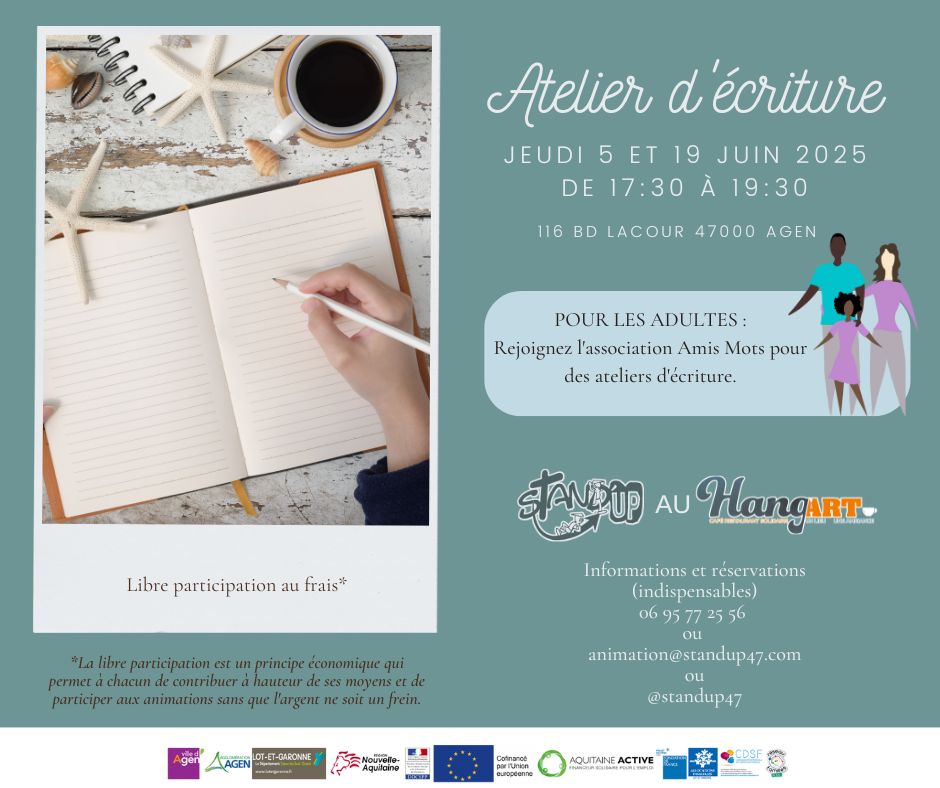 Retrouver l’association Amis Mots pour un atelier écriture les 5 et 19 juin.