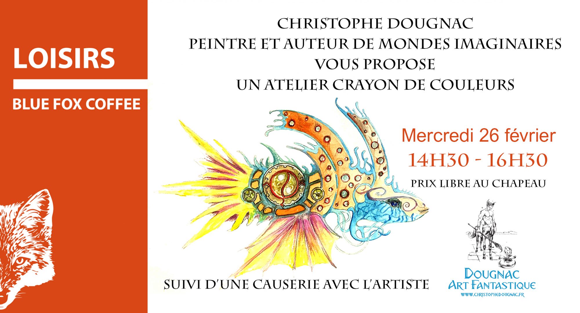 Venez vous initier au dessin en couleur de mondes imaginaires et animaux fantastiques, avec l’artiste bédéiste Christophe Dougnac, auteur de nombreuses BD de science-fiction et fantasy.