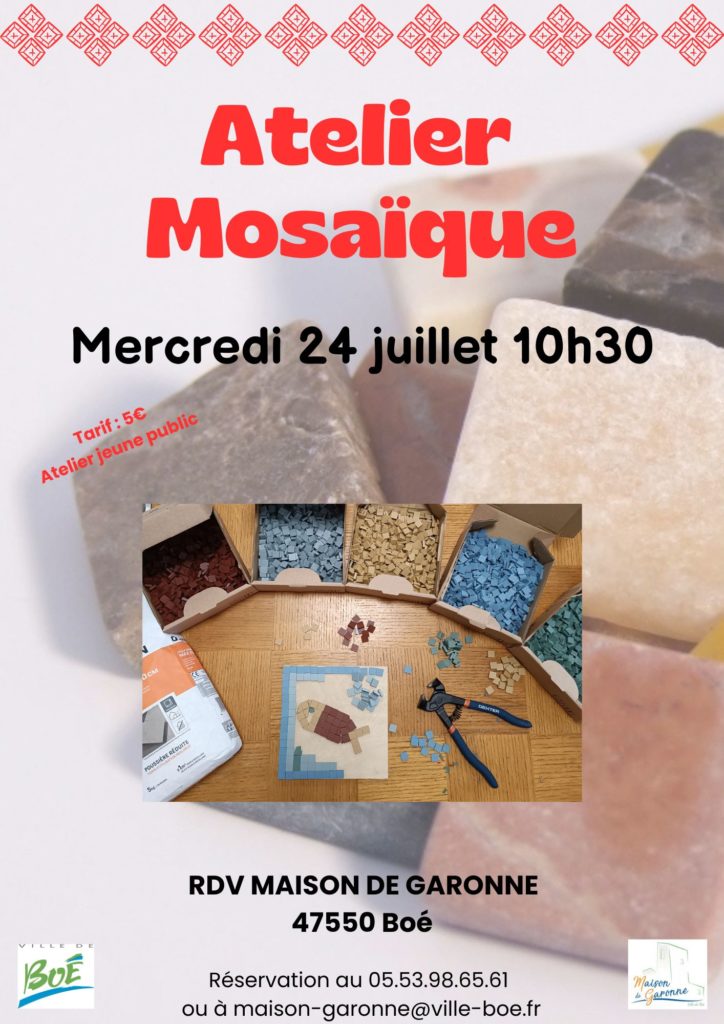 Mercredi 24 juillet à 10h30 : Atelier d’initiation à la mosaïque.