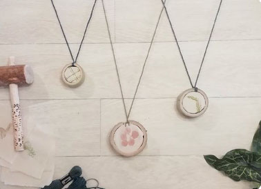 Avec tissus, plantes et marteau vous pourrez créer votre propre sautoir bannière.