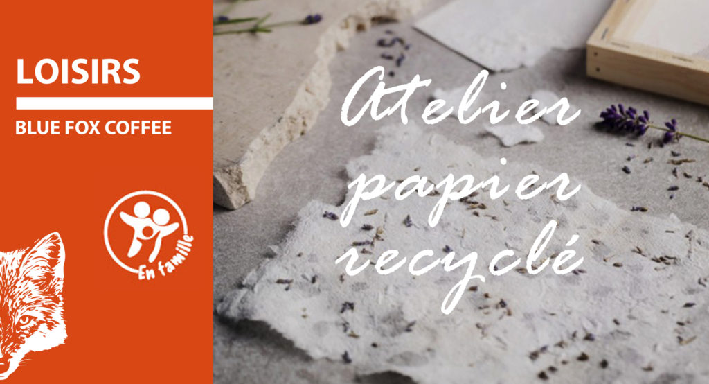 Le Blue Fox Coffee vous propose, le 2ème samedi du mois, de venir participer en famille aux animations de Clara. À partir de matières faciles à trouver à la maison ou dans la nature, venez fabriquer divers objets utiles, pratiques ou décoratifs !Pour cette séance, vous allez réaliser du papier recyclé, dans lequel vous pourrez y ajouter feuilles et fleurs séchées, ou même des paillettes !