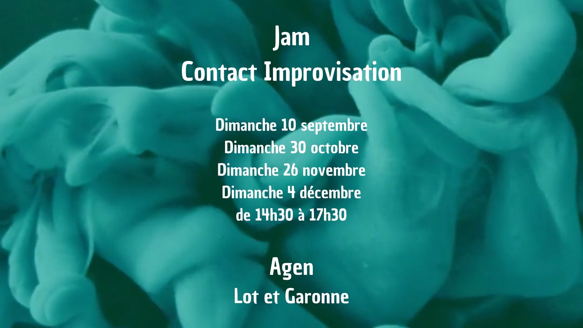 Les prochaines jam de contact improvisation de Agen auront lieu de 14h30 à 17h30, les dimanches suivants :Dimanche 10 septembre,Dimanche 30 octobre,Dimanche 26 novembre,Dimanche 4 décembre.