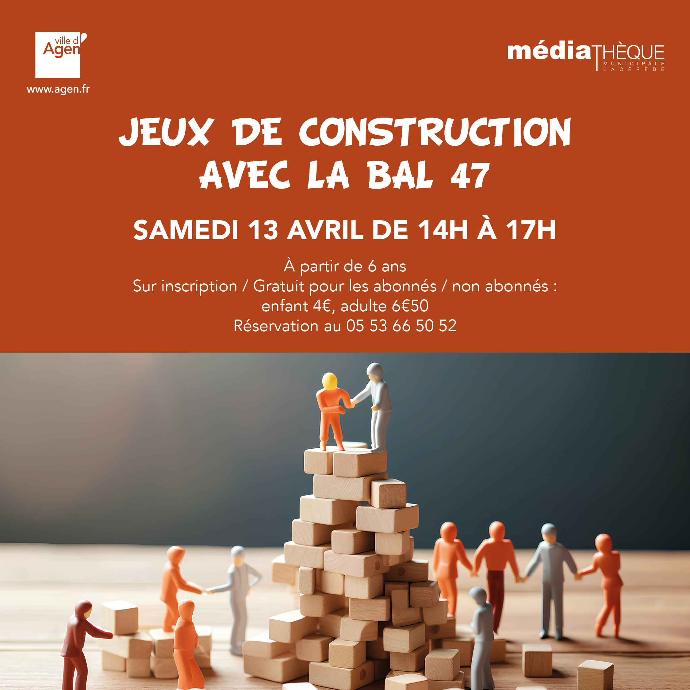 Viens t’amuser et construire ta médiathèque avec nous, selon tes envies et ton imagination, avec de nombreux jeux de construction proposés par La BAL47.