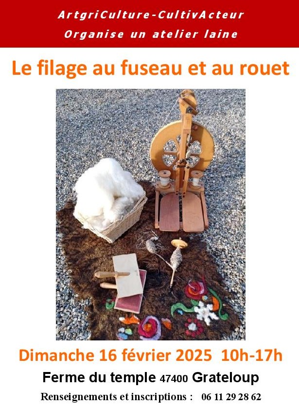 - filage au rouet : faire son premier fil puis apprendre à faire un retors simple pour un fil définitif.
