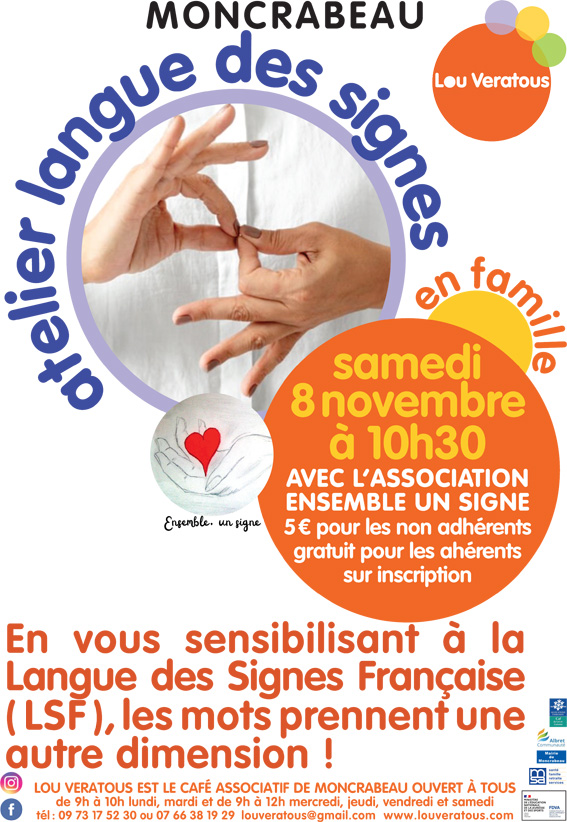 Nous vous proposons un atelier « langue des signes » destiné aux enfants et aux adultes, animé par l’association « Ensemble Un Signe ».
