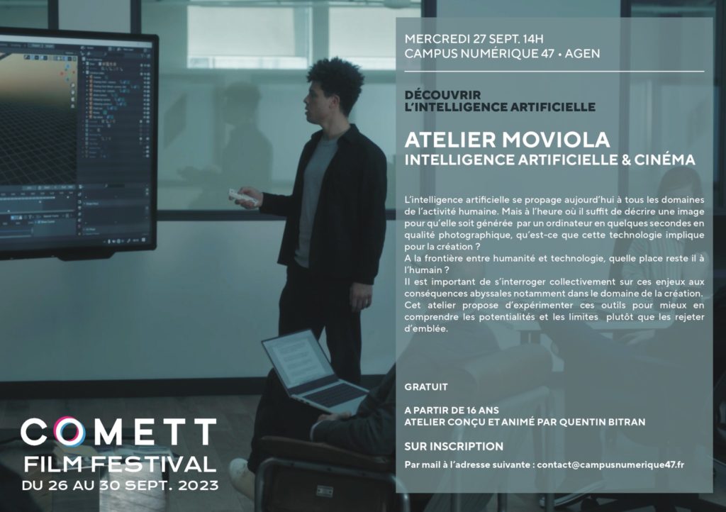 Dans le cadre du Festival Comett, le BAT47 et le Campus Numérique 47 vous proposent un atelier de réflexion, par la pratique, sur l’impact de l’utilisation de l’intelligence artificielle dans le processus créatif et la construction d’un film.