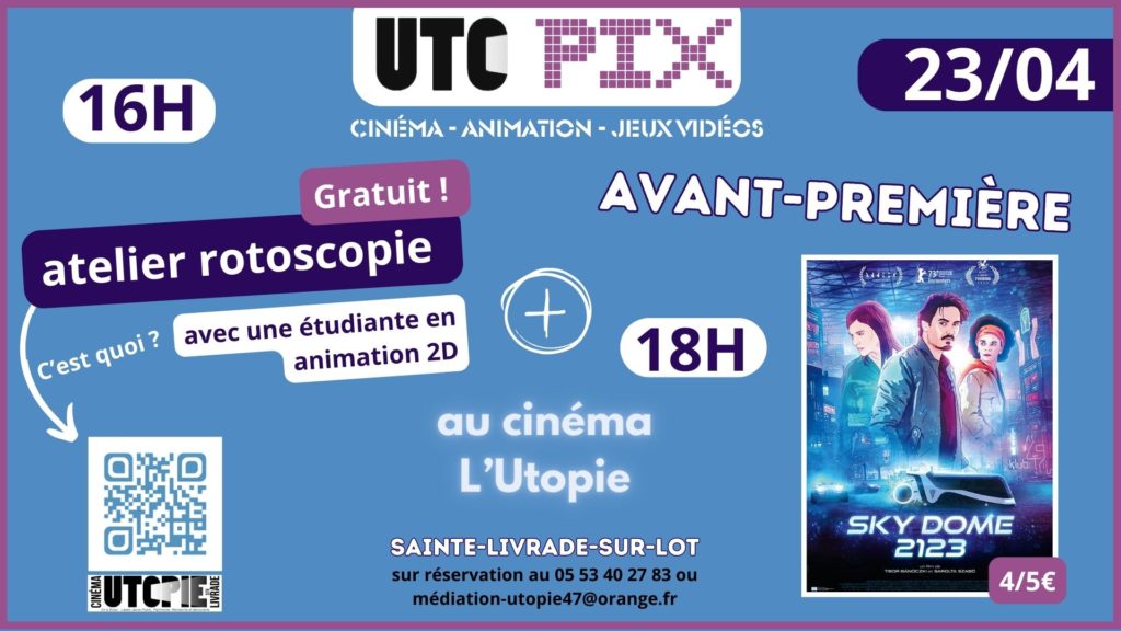 Atelier Rotoscopie avec une étudiante en animation 2d, suivi de l’avant-première du film Sky Dome 2123.