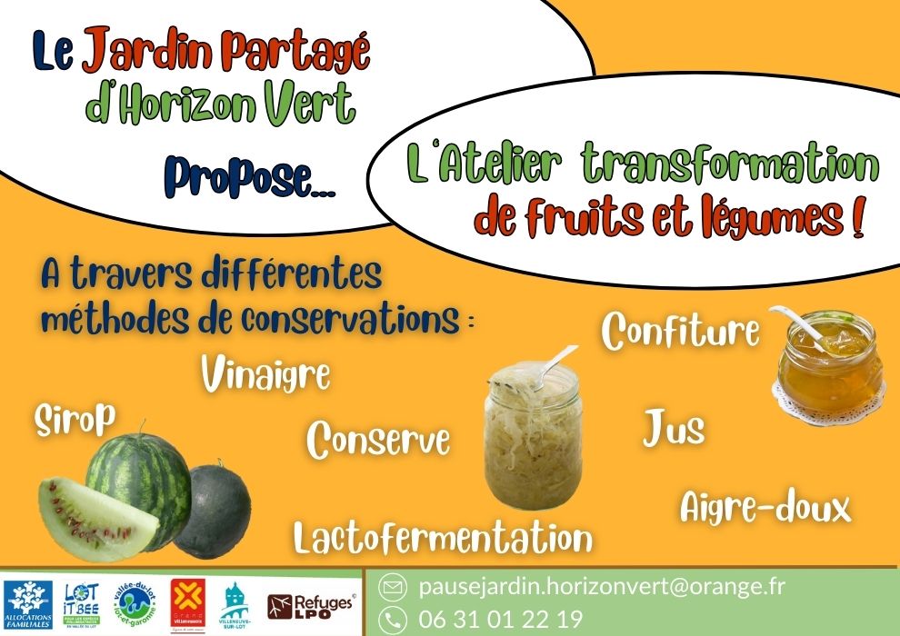 Atelier transformation de fruits et légumes, à travers différentes méthodes de conservation :