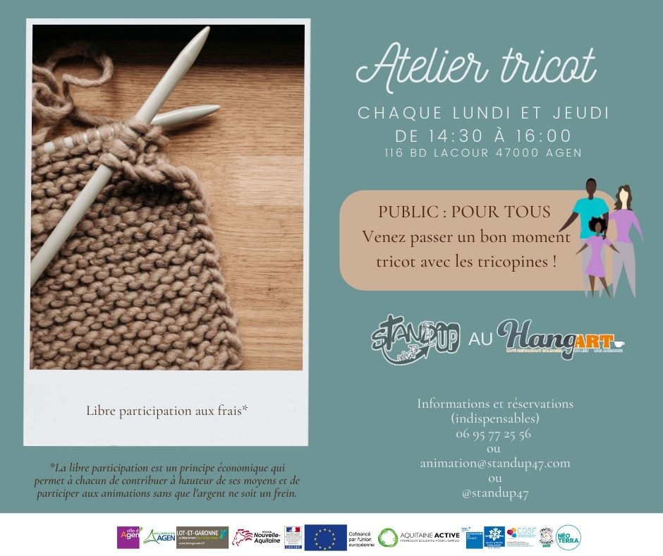 Venez tricoter dans une ambiance conviviale avec les Tricopines !