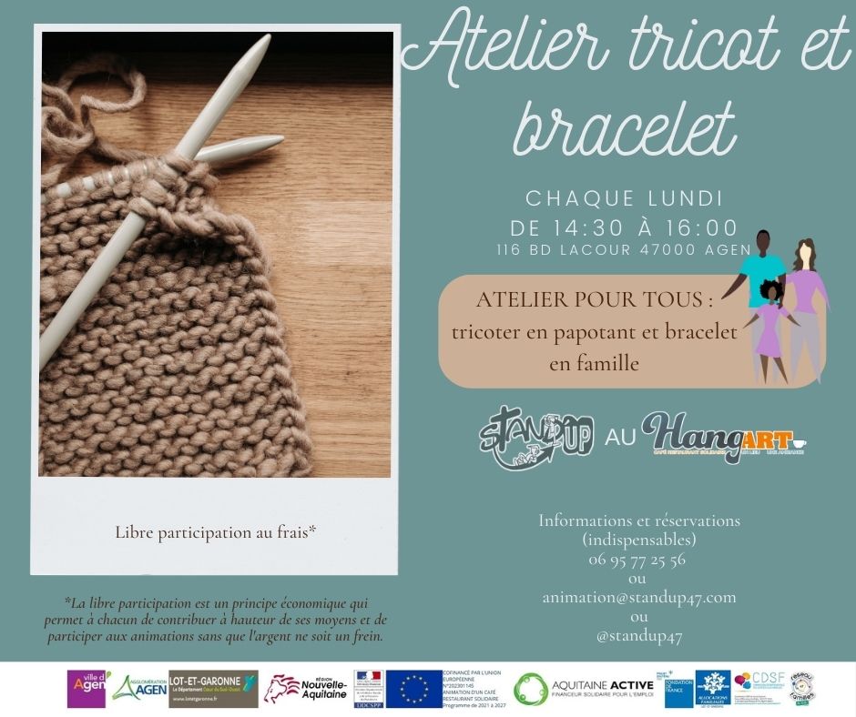 Venez tricoter tout en papotant et profitez pour faire des bracelets en famille.