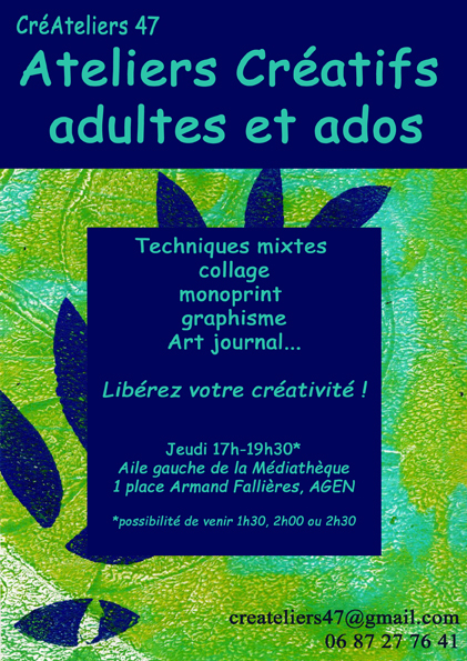 C’est un projet qui me tenait à cœur depuis longtemps et qui va prendre vie à la rentrée : un atelier pour adultes et ados, dans lequel je vous propose d’explorer différentes façons de libérer votre créativité.