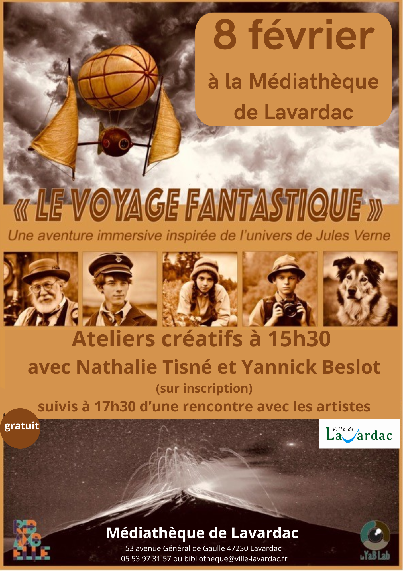 Le samedi 8 février à 15h30, rejoignez-nous à la Médiathèque de Lavardac pour participer à des ateliers gratuits avec les artistes Nathalie Tisné et Yannick Beslot, dans le cadre de la clôture de l’exposition Le Voyage Fantastique.