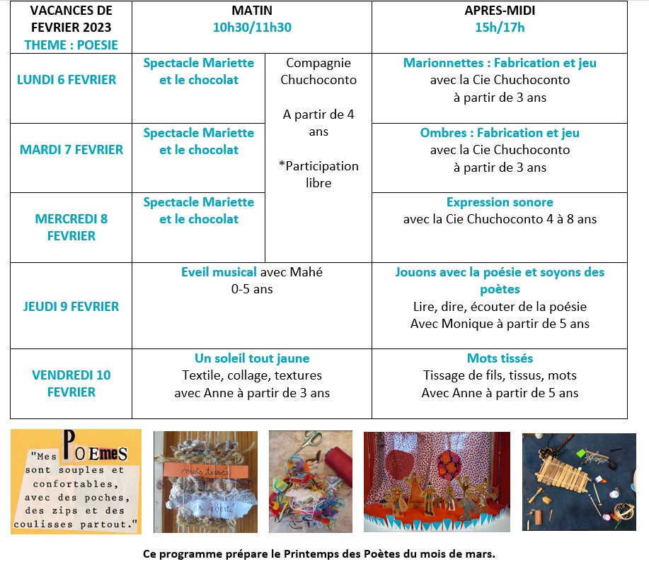 Ateliers et activités en famille 1ère semaine des vacances de février