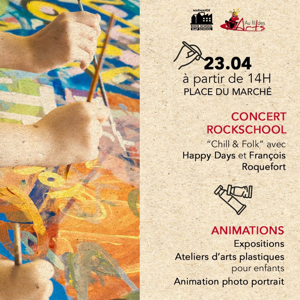 Concert RockSchool « chill & folk » sur la place du marché en partenariat avec le café « Chez les Filles » à partir de 15h avec le duo Happy Days et Franquefort.