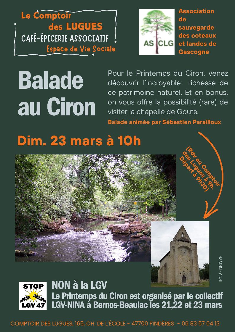Balade naturaliste au Ciron et visite de l’église Saint Clair de Gouts, dans le cadre du « Printemps du Ciron ».