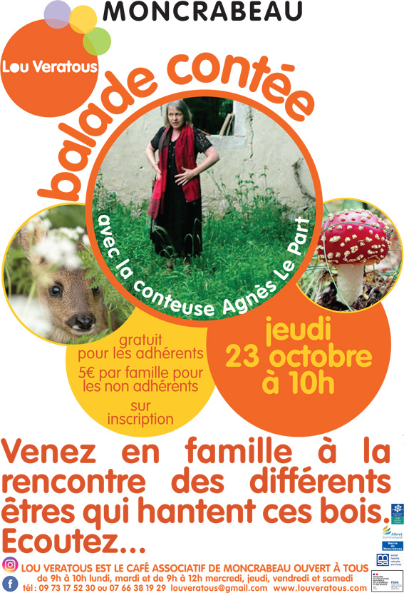 Nous vous proposons une balade contée avec Agnès Le Part et le centre de loisirs de Moncrabeau.