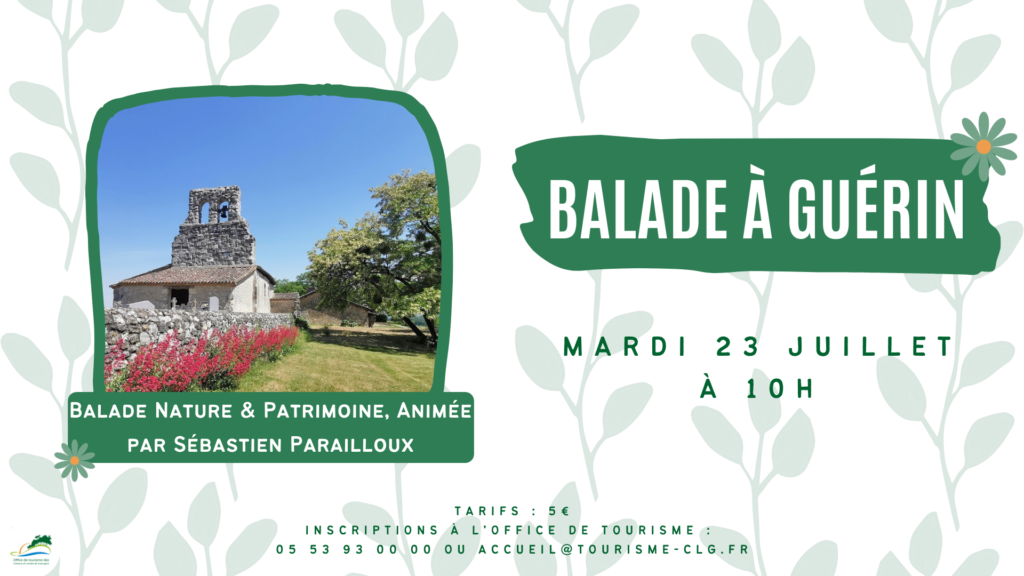 Le mardi 23 juillet à 10h, retrouvez Sébastien Parailloux, animateur nature et passionné d’histoire à Guérin pour cette balade de 2h.