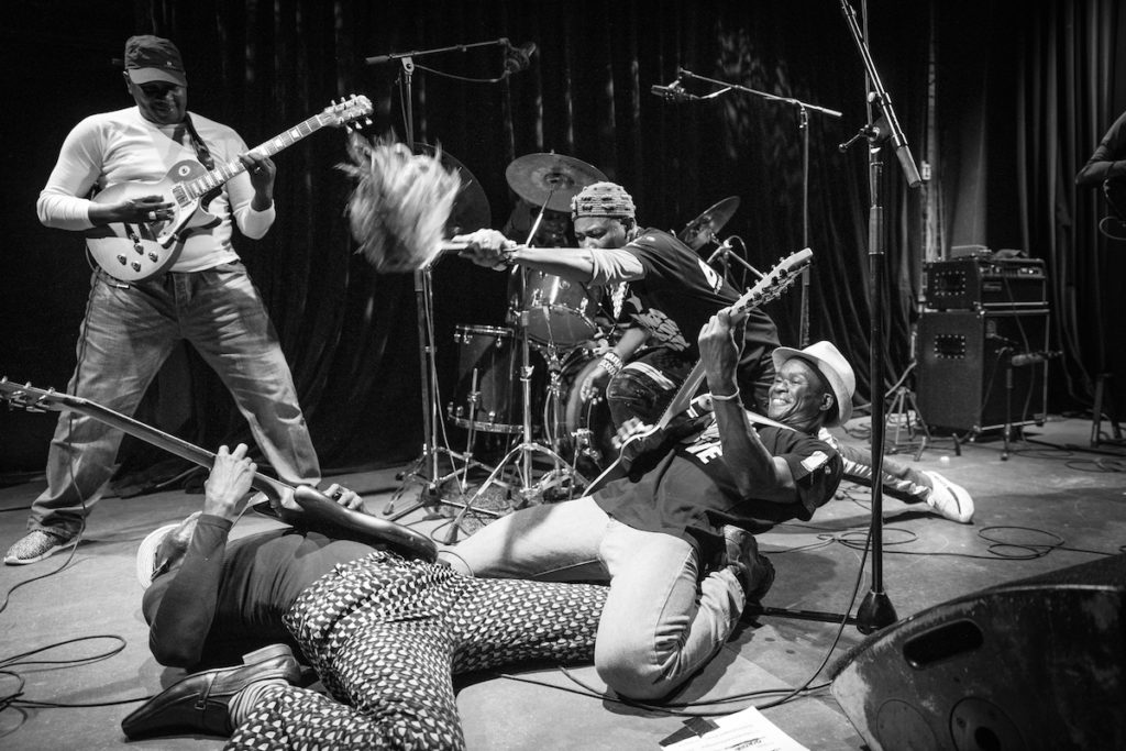 Le groupe est en effet une terrible machine à danser qui électrise la musique malienne et recrée l’effervescence des nuits torrides de Bamako.Vous aimez les rythmiques infernales ? Les guitares qui vous tricotent un funk torride avant d’électrocuter les baffles à coups de soli carrément rock’n’roll ? Les chanteurs habités par une transe dont vous vous rendrez compte trop tard qu’elle est salement contagieuse ?Pas moins de trois guitares à la manœuvre pour ériger un véritable mur de son naviguant subtilement entre le sensuel et le torride, bassiste habité, batteur impassible mais sévèrement taquin, et chanteur possédé, ça ne fait pas l’ombre d’un doute, vous allez succomber à la fièvre bambara…