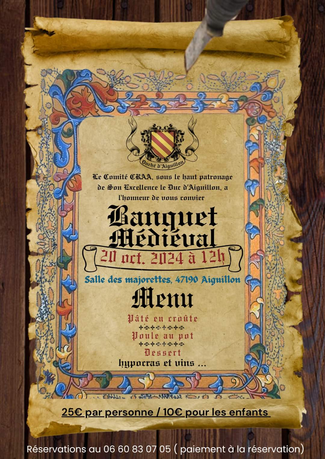 À l’occasion des Bastides en Fête, l’association CRAA vous propose un banquet médiéval digne des plus grandes tablées de l’époque.