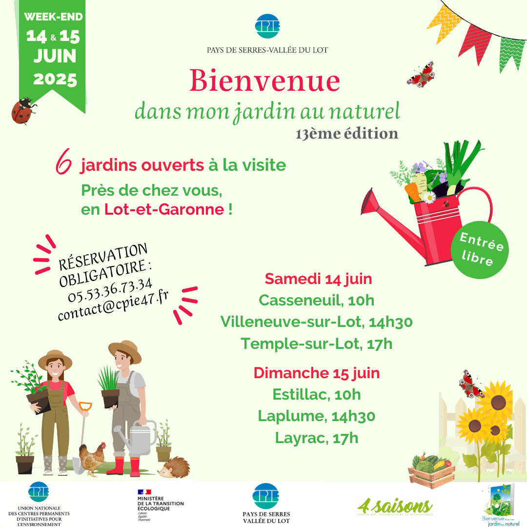 Inscription obligatoire pour connaître l’adresse des jardins au 05 53 36 73 34 ou à contact@cpie47.fr