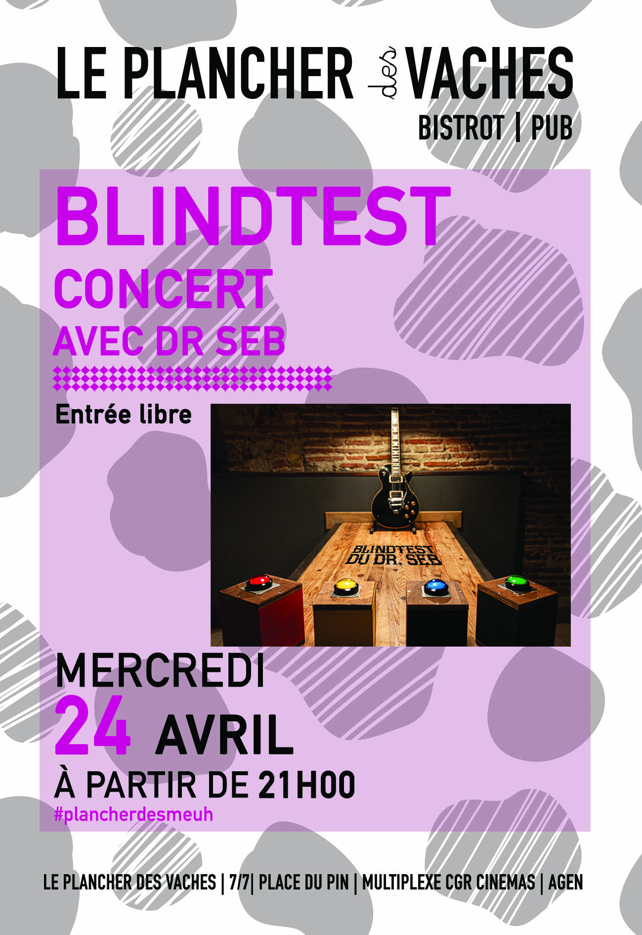 Le Plancher des Vaches vous invite pour un quizz musical avec Docteur Seb.Seuls les airs les meilleurs restent dans les têtes… Il y aura du rock, de la pop culture, de la musique classique pour les nuls et bien d’autres…Venez tester votre culture G en identifiant ces notes sortant d’une guitare et d’un ampli…Parfois joués de près, parfois réarrangés ou dévoilés peu à peu : il y a (presque) toujours une oreille pour taper dans le mille !On vous attend pour un moment de souvenirs, de redécouvertes…et d’adrénaline.