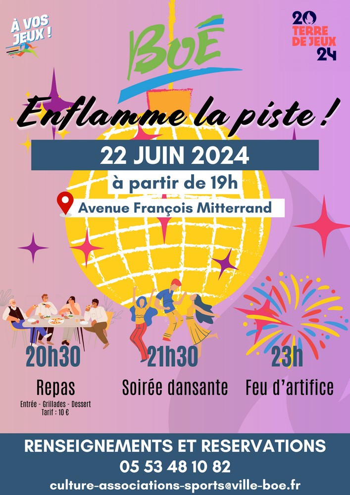 À partir de 19h, les associations sportives boétiennes et la ville de Boé investissent l’avenue François Mitterrand pour une soirée qui s’annonce conviviale et festive.