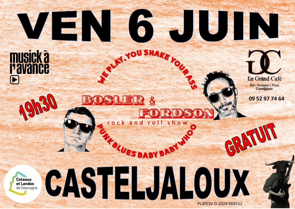 Dans le cadre de ses Fêtes du Printemps, Musick à l’Avance organise un concert exceptionnel et gratuit au Grand Café de Casteljaloux le vendredi 6 juin dès 19h30 avec le groupe Bosler & Fordson*.