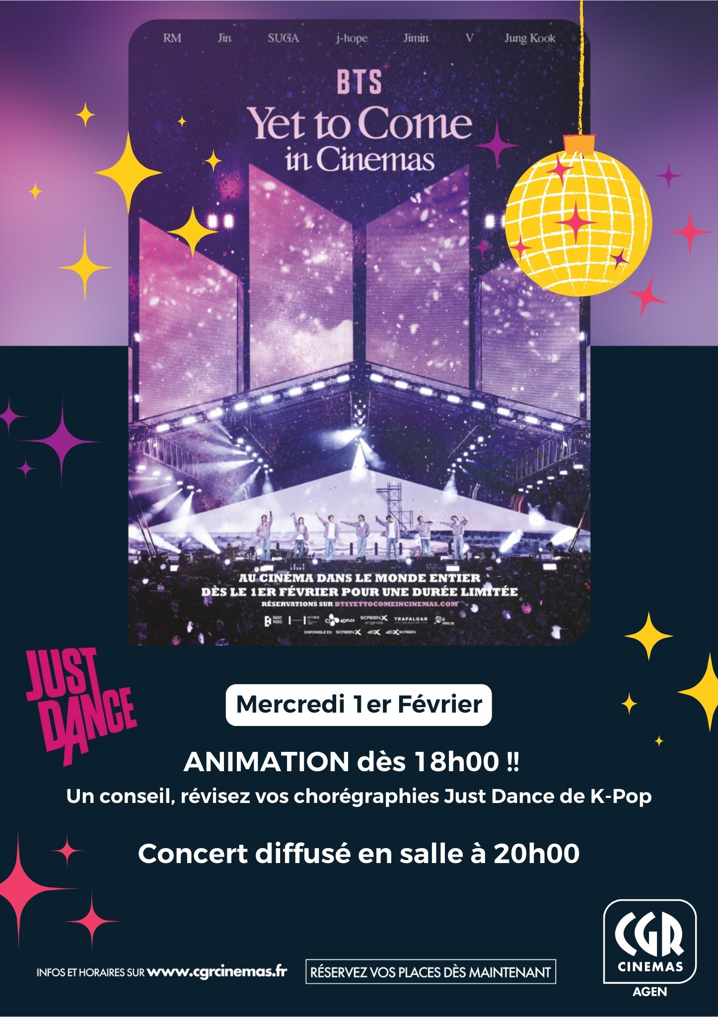 Pour accéder à cette animation il faut avoir son billet pour la séance BTS Yet to come à 20h – Animation prévu seulement le mercredi 1er février de 18h à 20h.